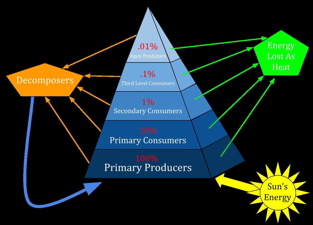 A energy pyramid is B. A diagram that shows the amount of energy that moves from one feeding level to another in a food web.