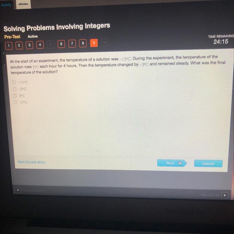 1) At the start of an experiment, the temperature of a solution was -12°C