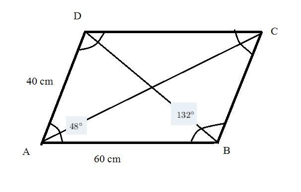 Answer: The length diagonals of the given parallelogram are approximately 91.716 cm and 44.589 cm.