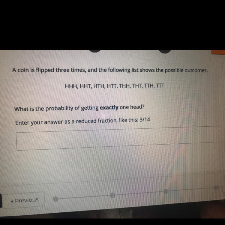 Favorable outcomes of getting single head (H) = [HTT, THT, TTH]