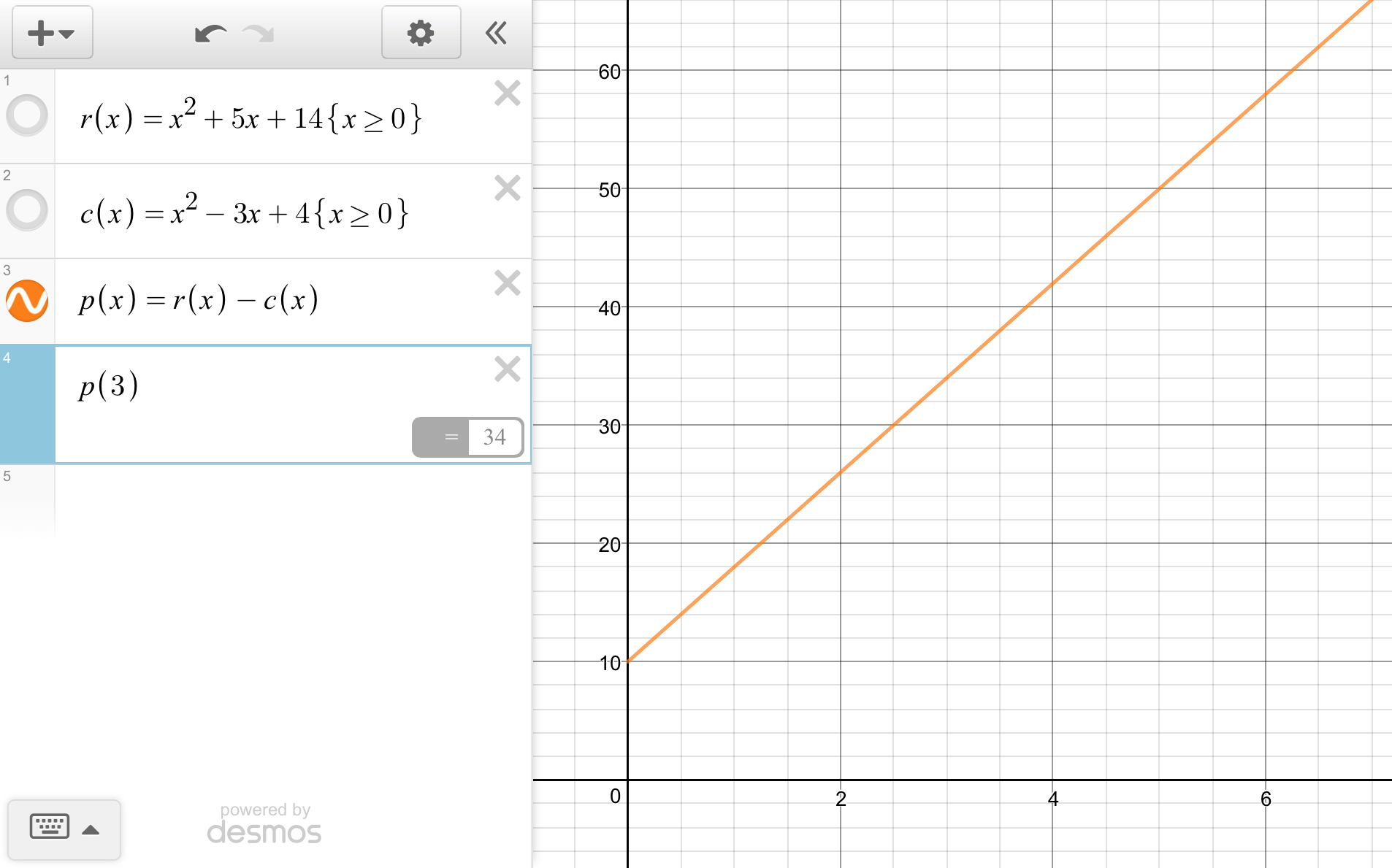 Since the value is positive, we can say that the store will profit in its third month. Knowing that r(x) and c(x) is measured in hundreds of dollars, we can also say that the profit will be $3400.