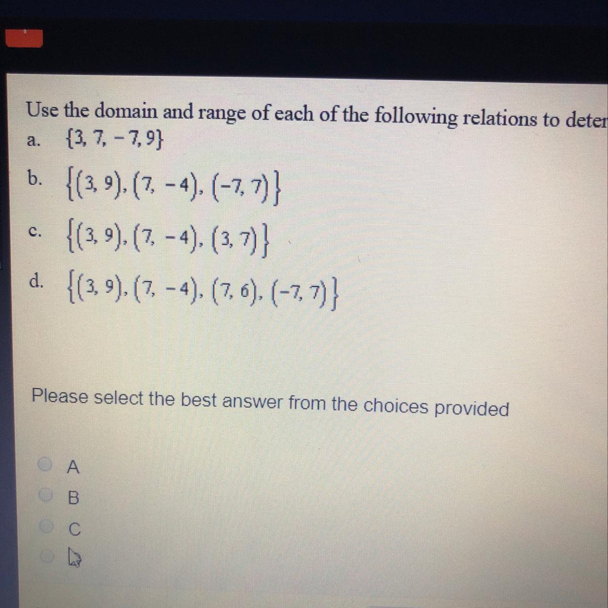 Now c, we see that there are two different points with the same x so this is not a function.