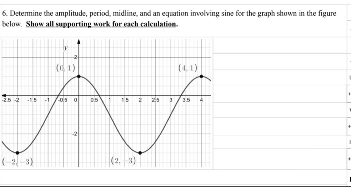 so the midline would be y = (ymax + ymin) / 2 = (1 -3) /2 = -1
