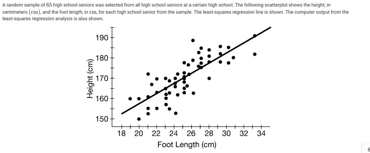a) According to the least-squares regression line, the estimated height for a high school senior with a foot length of 20 cm is: