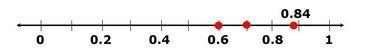 It honestly depends on the kind of number line you have, it'd be between 0 and 1, very close to 1. In the image below, you see a number line that includes tenths between 0 and 1, and they also include .84.