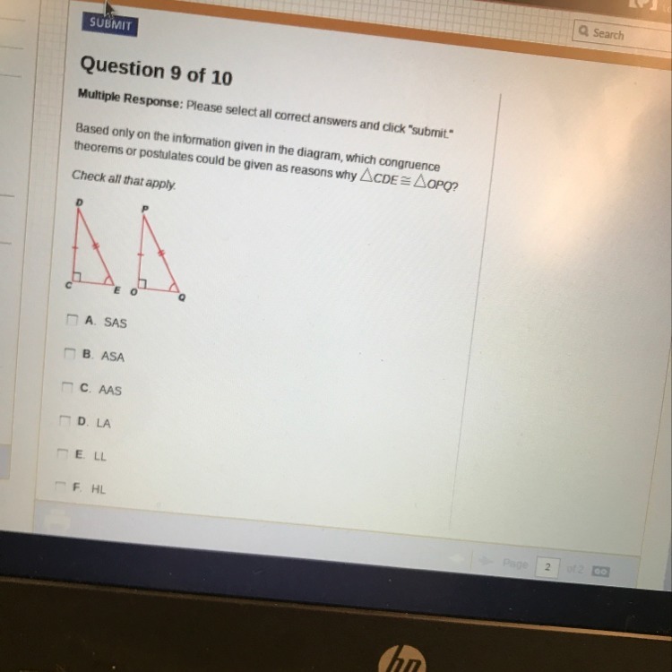 Since ∠C = ∠O = 90°, ∠E = ∠Q , and DE = PQ