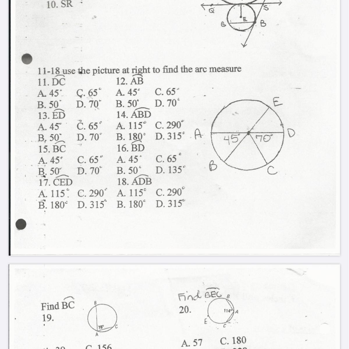 17. From a3 above, we know the arc measure ED is 45°. The arc measure of CED is equivalent to ED plus CD: