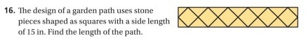 The squares were in a diamond form. There were six squares. To get the length of the path, I have to solve for the diagonal of the square.