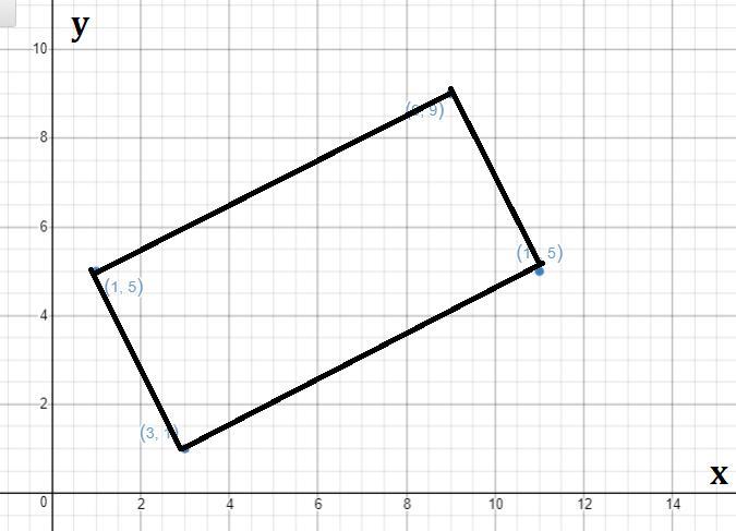 On a piece of graph paper, plot the following points: A (3, 1), B (1, 5), C (9, 9), and D (11, 5). These coordinates will be the