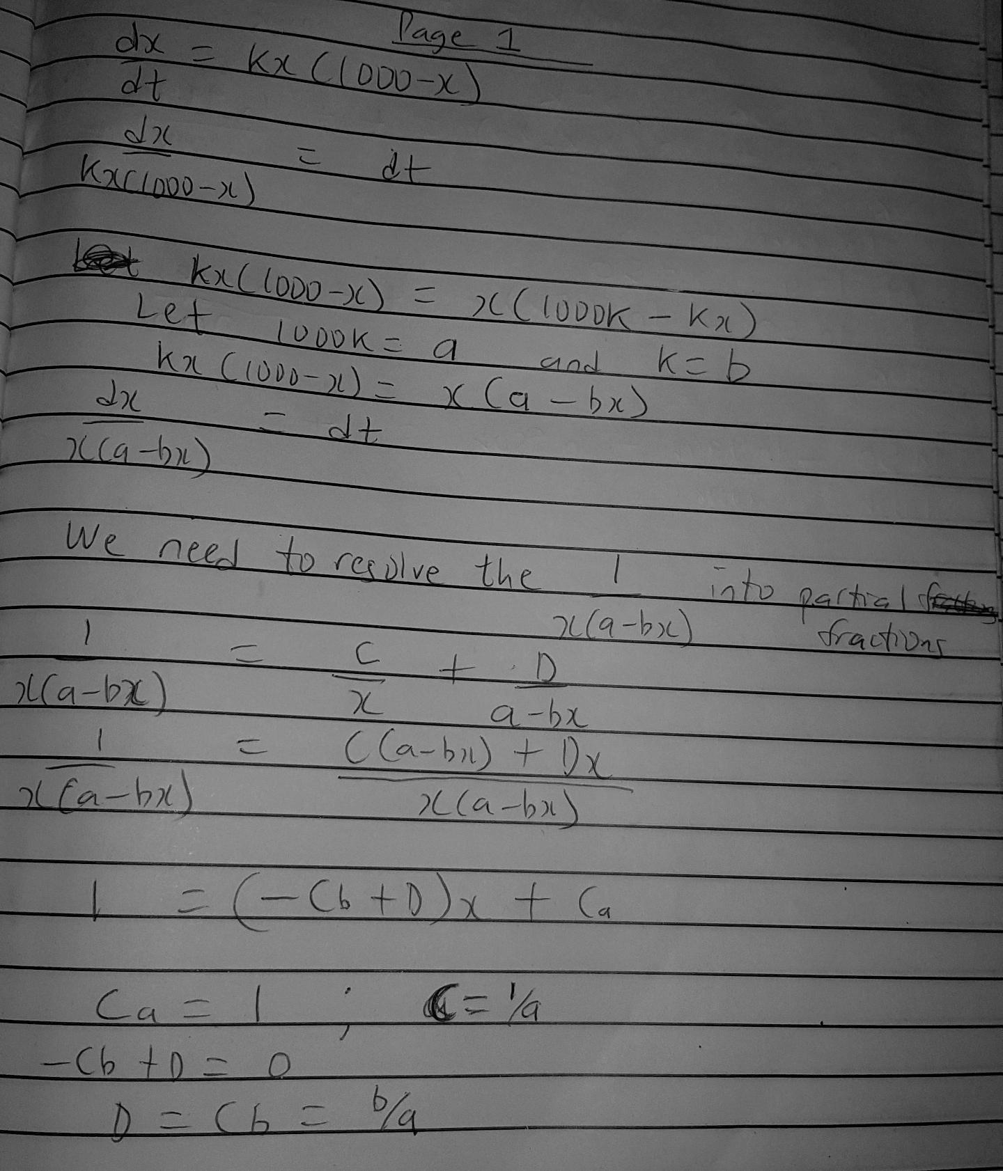 dx/dt = kx(1000-x), x(0) = 1