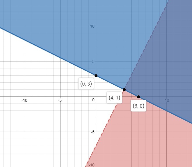 In order to know whether the point (3, −7) is included in the solution area for the system or not, we must put it in both the equations, if it satisfies both then only it is within the solution area.