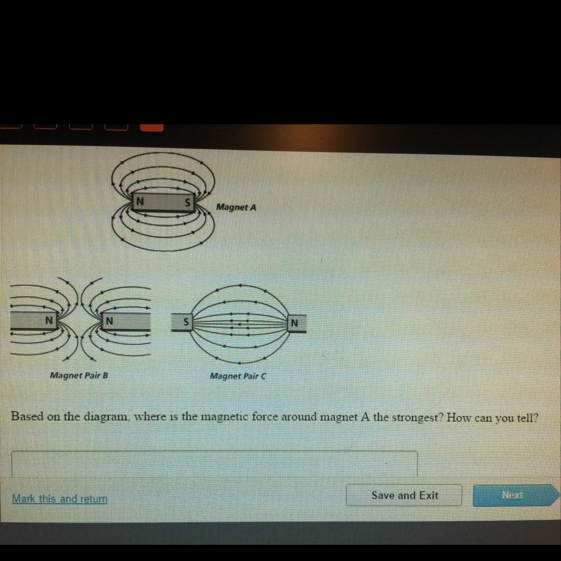 The poles, because the negative and the positive charges of them attract one another the most better than the more neutral middle of the magnet does.