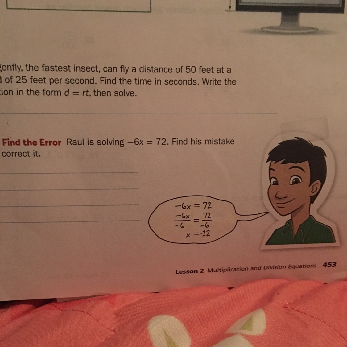 I don't see any errors. Raul has the correct steps and final answer. We can check the answer by replacing x with -12 and simplifying the left side