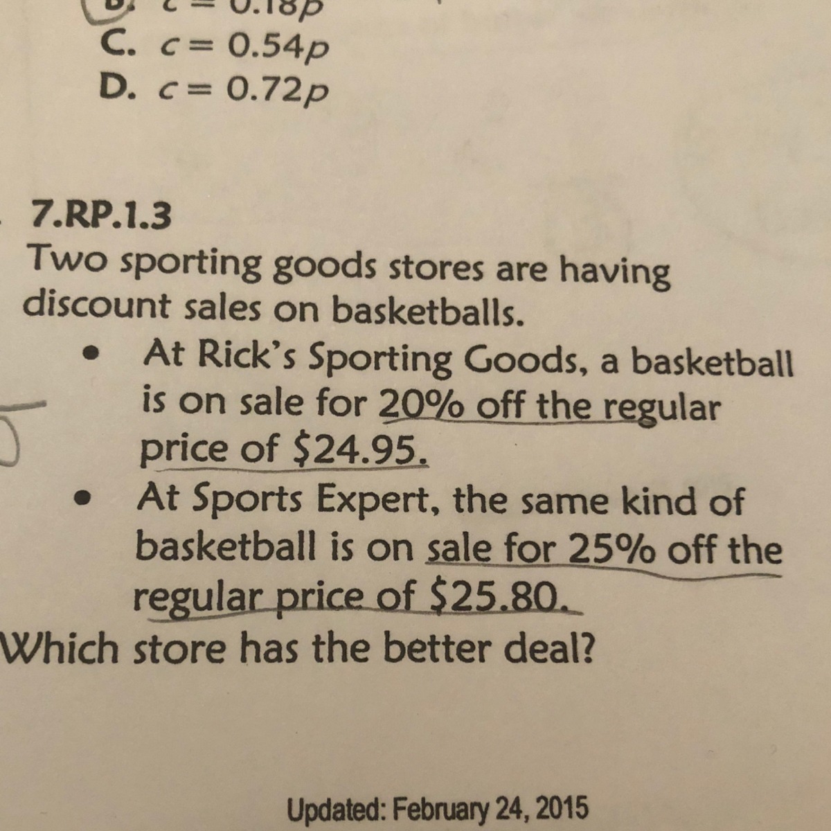 so the basketball is on sale for 75% of the original price 25.80 x 0.75 = 19.35 (sale price)