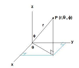 The transformation from the Cartesian coordinate system (x,y,z) to the spherical coordinate system (r,θ,φ) is given by