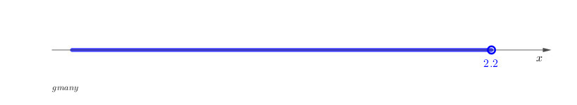 Which number line represents the solution to the inequality 22 > 10x