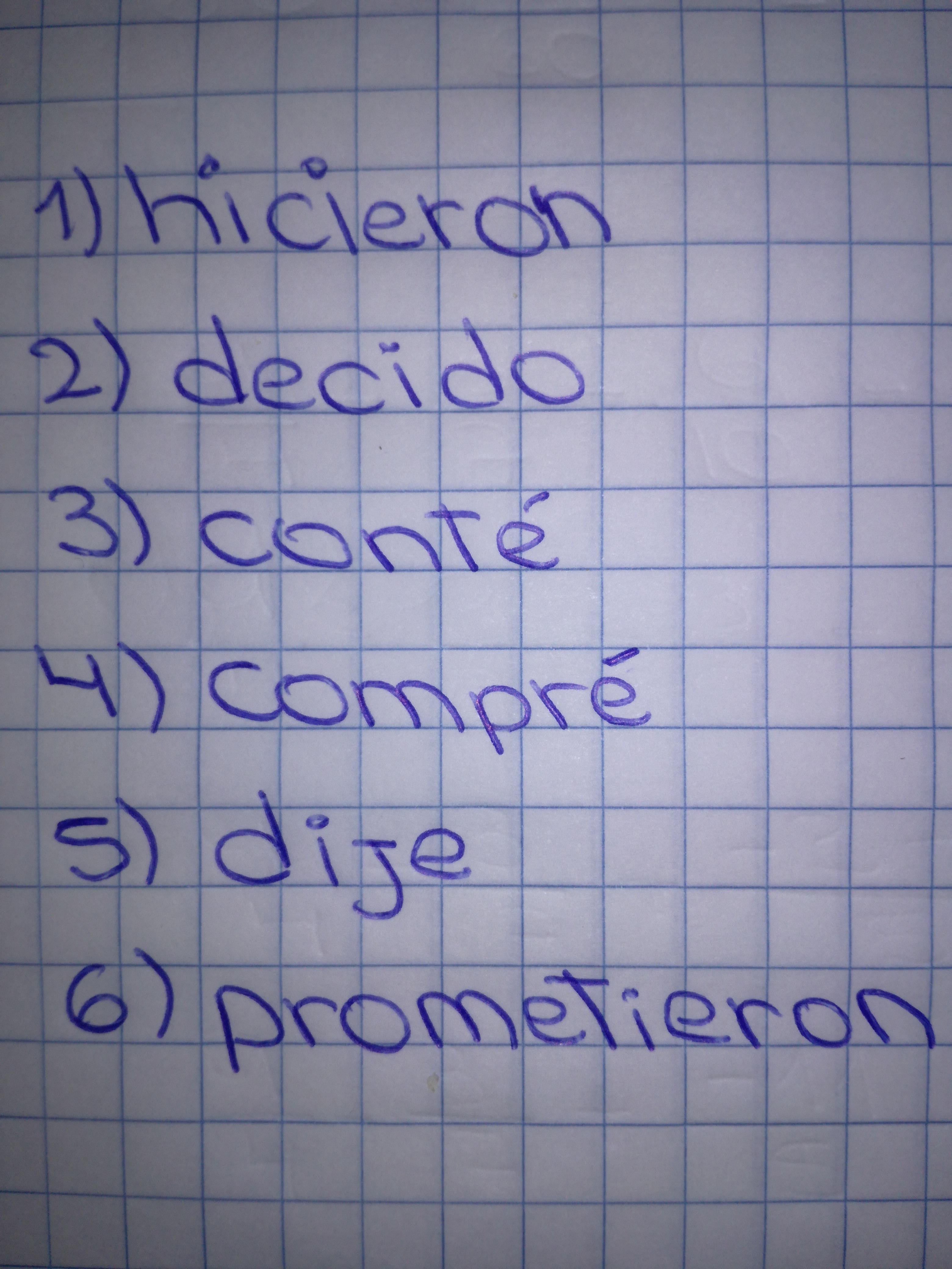 Hola, Miranda: Estoy desesperada, imagínate que en los últimos días una compañía de California me (1-hizo) una oferta de trabajo muy buena, pero hasta ahora yo no (2-he decido) si aceptar; por eso no les (3- he contado) a mis padres y tampoco (4-he comprado) el billete de avión. Hoy debo confirmarles y si acepto debo viajar pasado mañana. Lo peor es que yo no (5-he dicho) nada en mi actual trabajo y ellos hace poco me (6-me habían prometido) un aumento de sueldo grandísimo. Amiga, por favor, ayúdame a tomar la mejor decisión. Daniela.