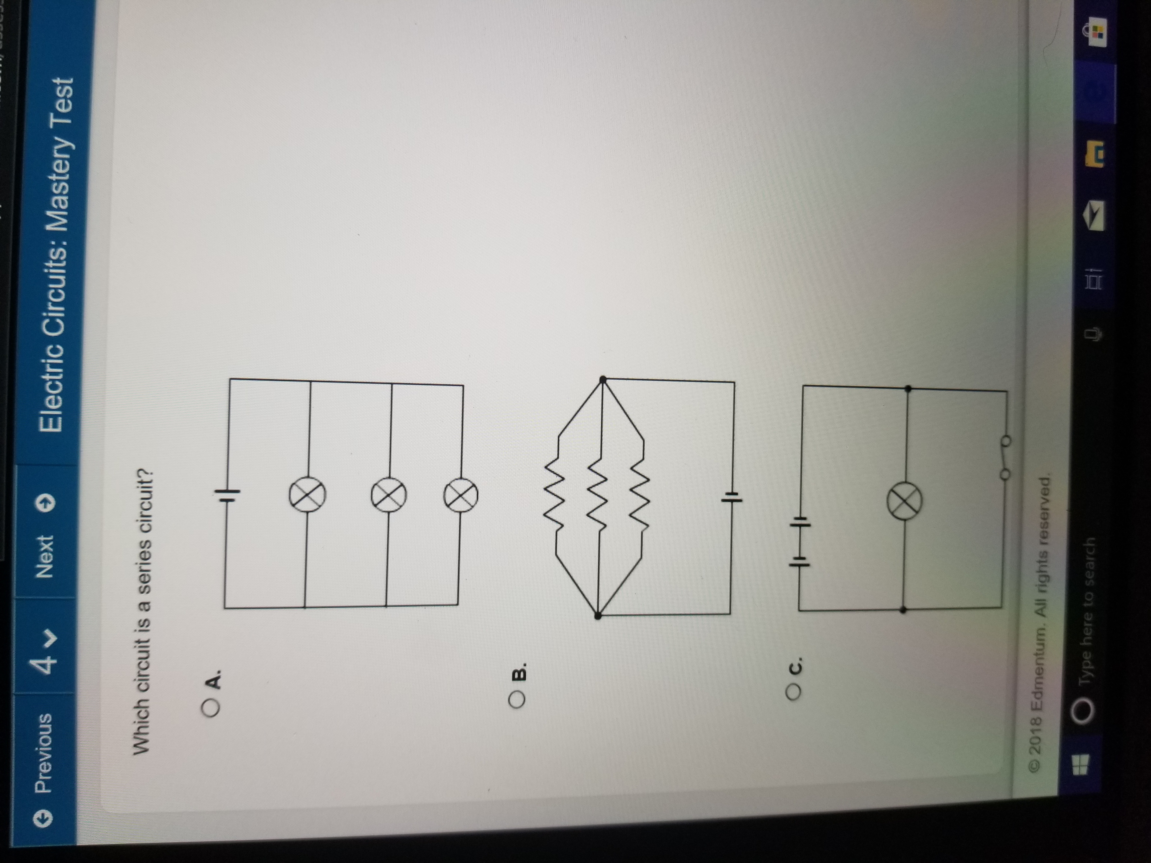 From the given circuits, the circuit D is the series circuit. while the other circuits are parallel circuits.