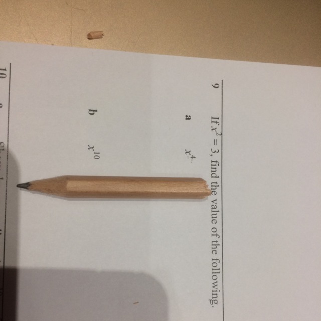If x squared equals 3, find the value of x to the power of 4 and x to the power of 10