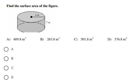 The formula you use to find the surface area of a sphere is A=4 π r^2
