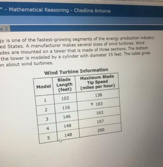 The blade length for model 5 is 148 feet