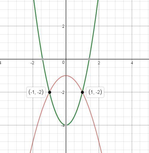 The solutions of the first equation form a parabola looking downwards (since the coefficient of x^2 is -), and the second, a parabola opening upwards (since the coefficient of x^2 is +).