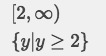 {y|y greater than and equal to 2}