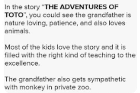 The family was so fed up with his activities that the grandfather decided to return Toto back to the Tonga driver. Hence, the moral of the story is that one must maintain courtesy