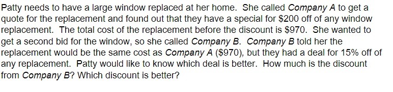 This means that the discount for company A is better because company A has $200 off compared to company B's $145.50