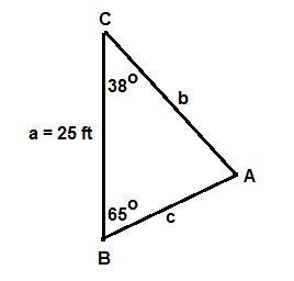 c = [sin(38)/sin(77)]*25 = 15.796 ft
