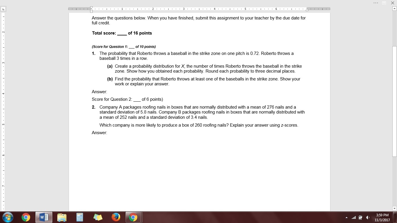 X = number of times Roberto throws the baseball in the strike zone