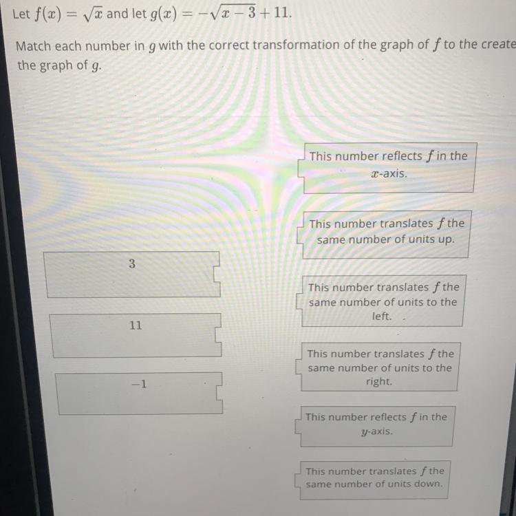 g(x) =  -  \sqrt{x - 3}  + 11