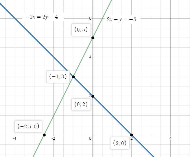 From the graph we can concluded that both the lines intersect at (-1,3).