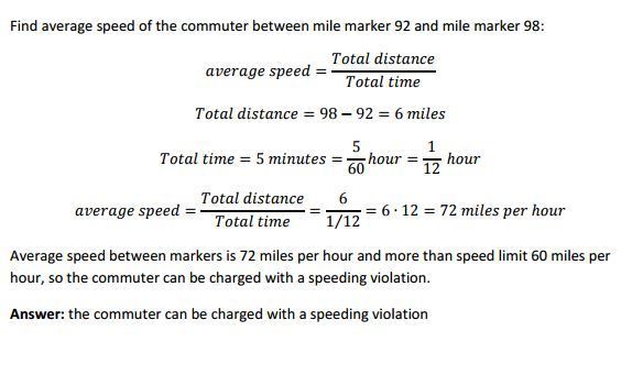 nvolving two police officers. The first officer is positioned at mile marker 145 and clocks the commuter’s car at 45 miles per hour. Five minutes later, a second police officer at mile marker 149 clocks the car at 40 miles per hour. Can the commuter be charged with a speeding violation?