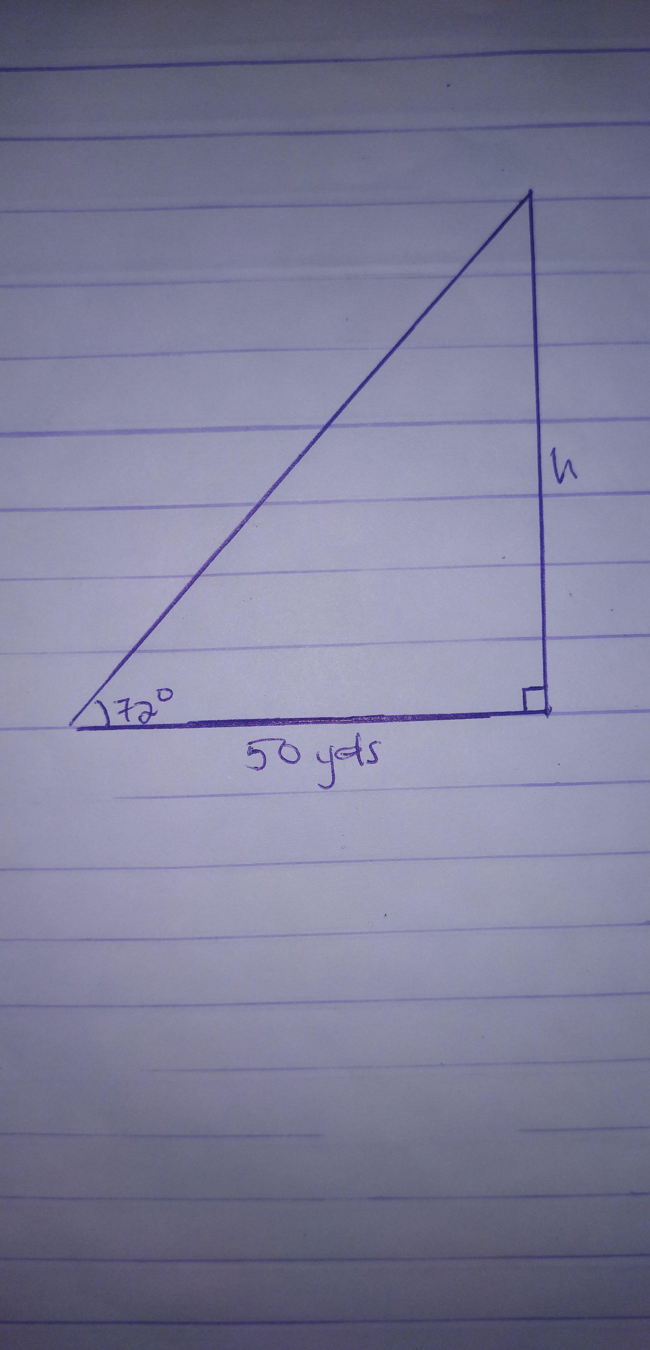 Θ = 72° ; adjacent = 52, opposite = height(h)