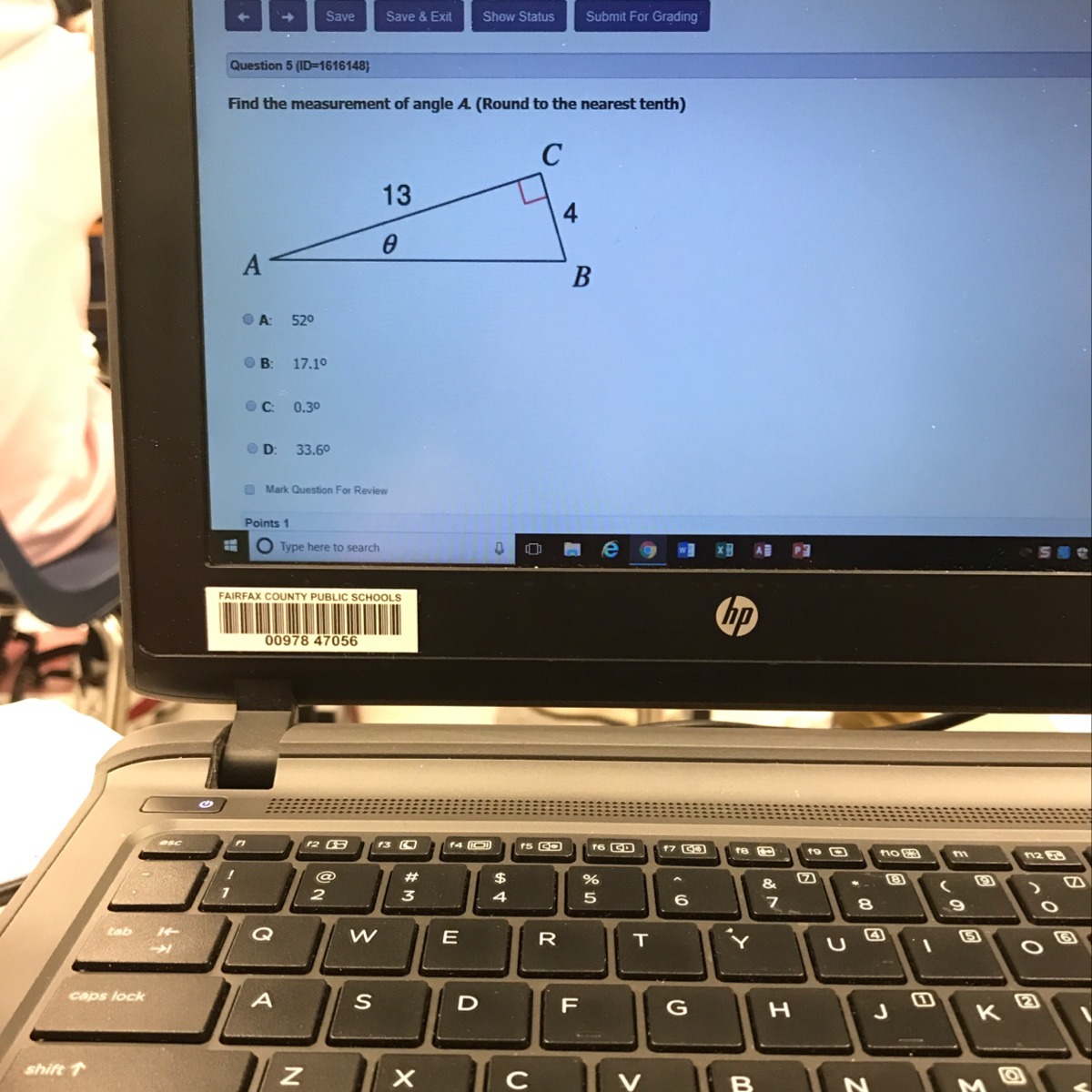 Find the measurement of angle A (round to the nearest tenth)