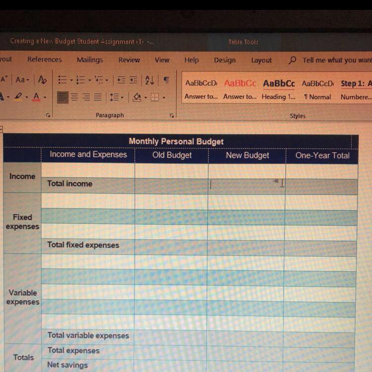 The new budget saves 50.00 a month towards the purchase of the laptop.