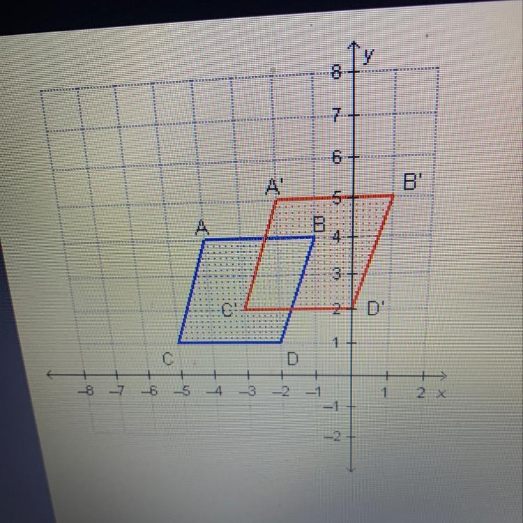 Therefore, pre-image ABCD has been shifted 2 units right and 1 unit upwards to form image A'B'C'D'.