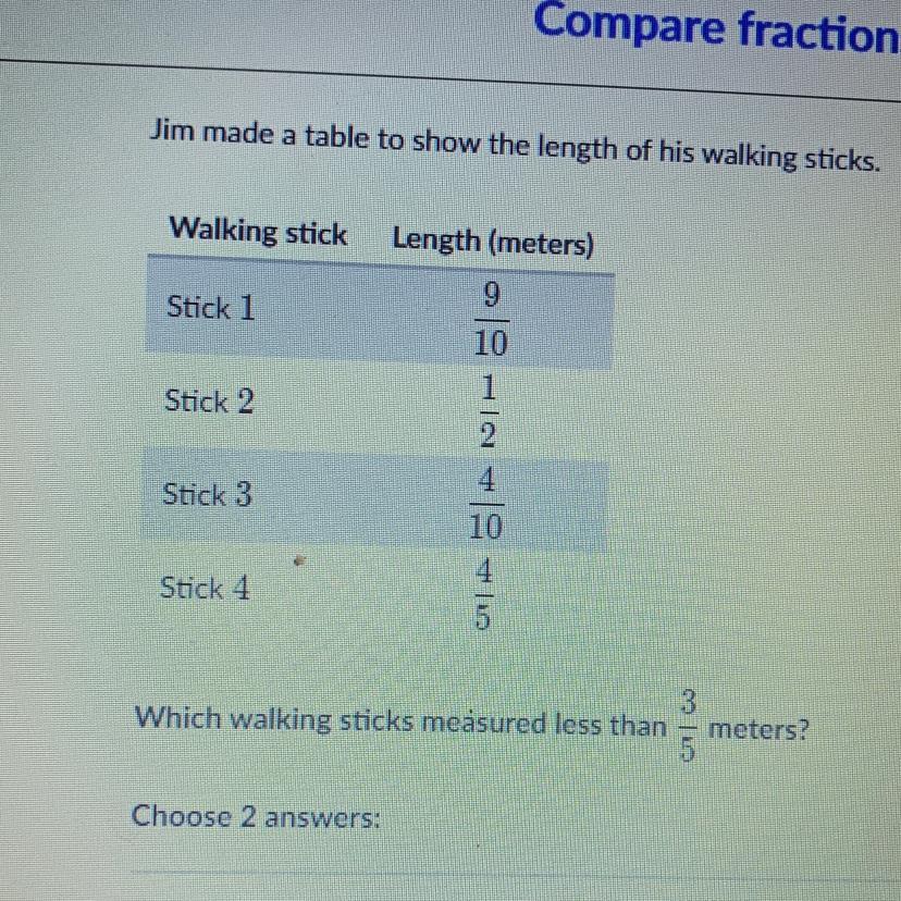 To determine which of the lengths are less than ⅗ meters, you would compare each given length with ⅗ meters.