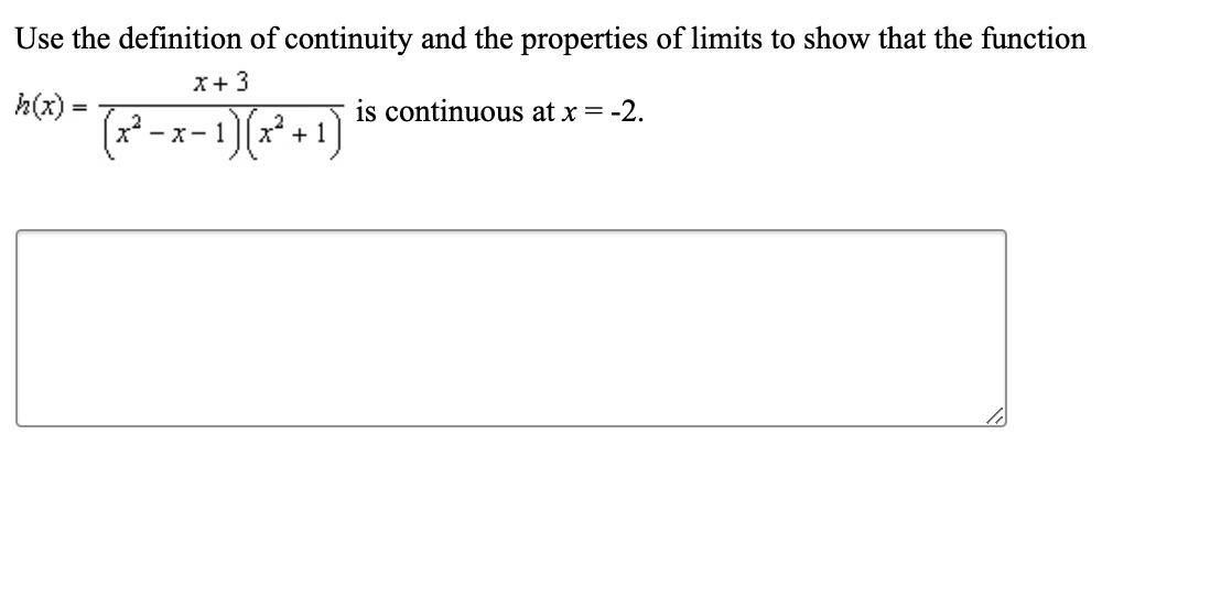 We are asked to use the property of limit and continuity to show that the function h(x) is continuous at x= -2.