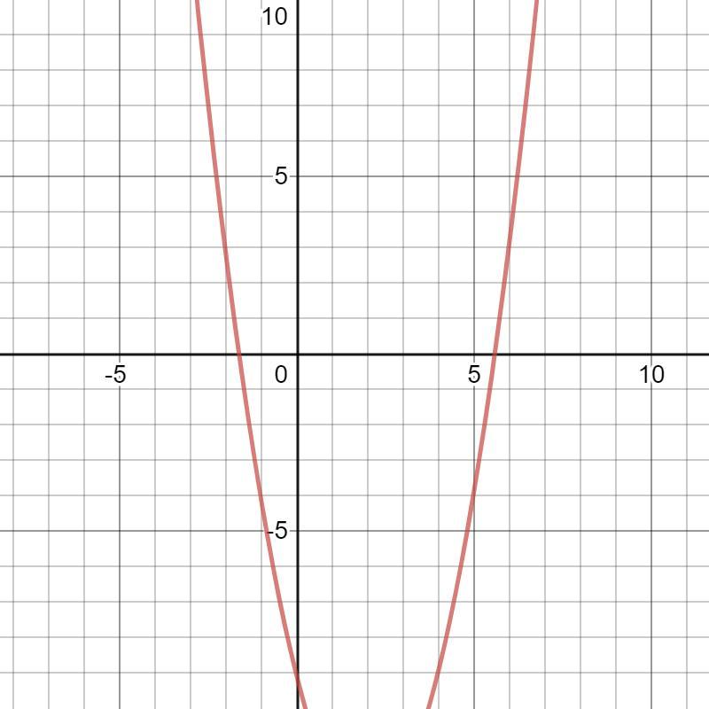 The x-coordinates of the intersection points are approximatively -1.6 and 5.6