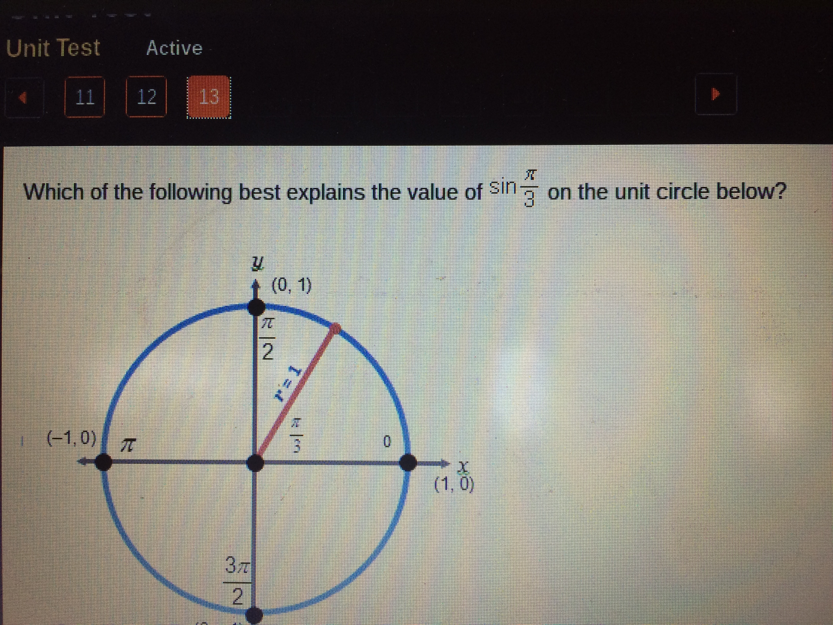 forms an arc of length S and the x-axis and y-axis divide the coordinate plane and the unit circle as it is centered at (0.0).
