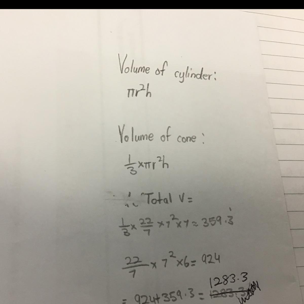 Basically you are just applying the volume formula for the cone and cylinder then you are adding them together.