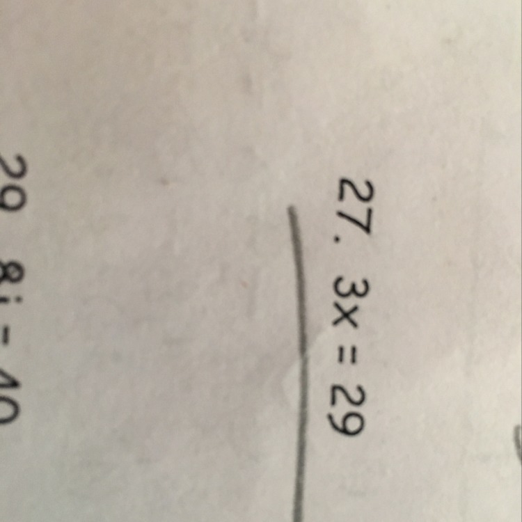 You want to have your x alone so you would get rid of the 3. to do that you must do the opposite of what it's saying which it is multiplying so you would divide 3 and do it on both sides. so 3/3 cancels eachother out and now you have to divide 29 and 3 and that is what x equals