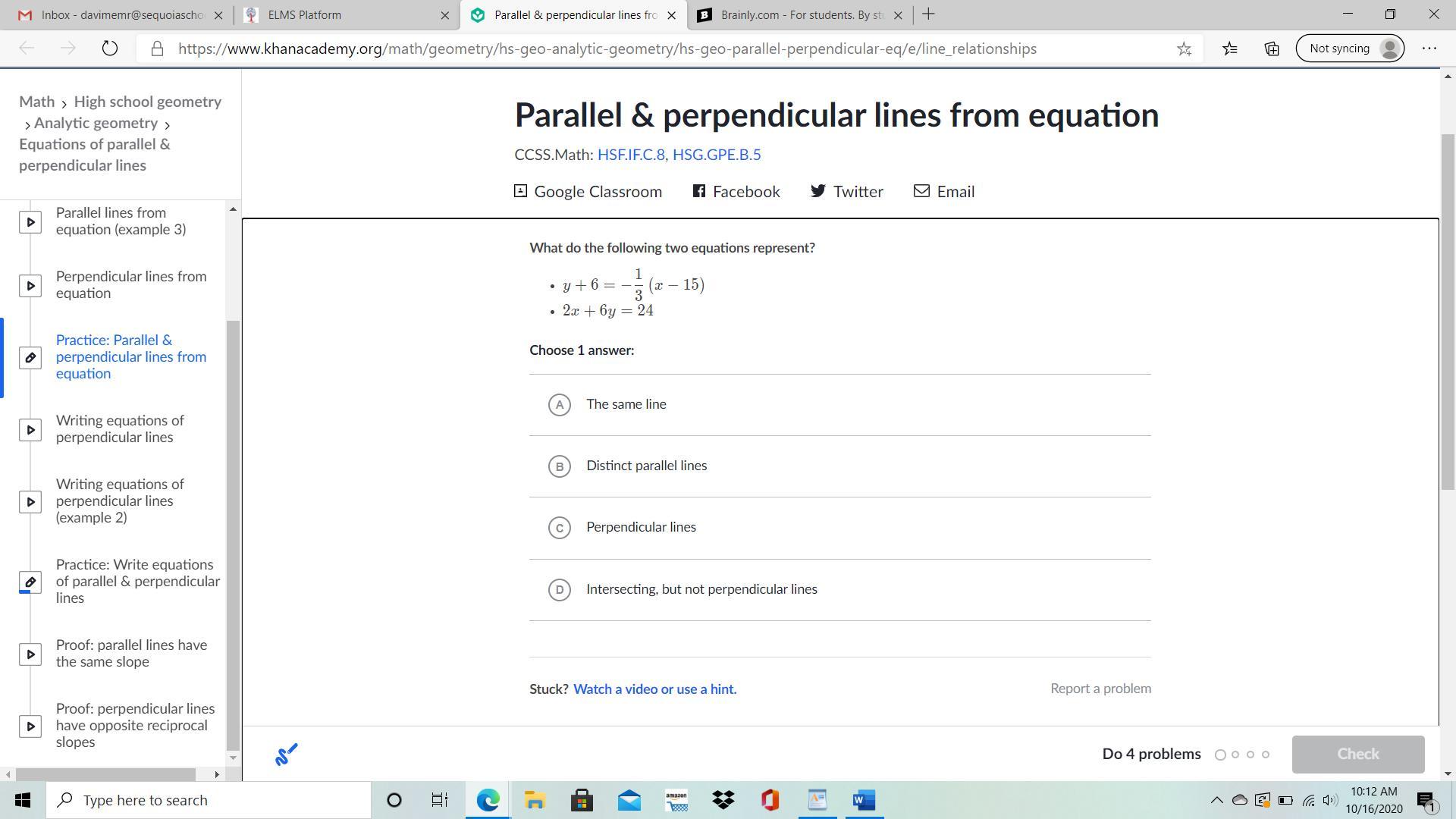 Equation of line perpendicular to this line is: