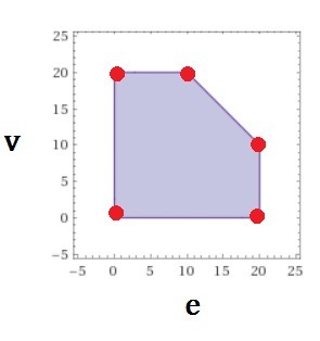 (e,v)=(0,20) >> Money = 80e+5v = 80*0+5*20 = 100
