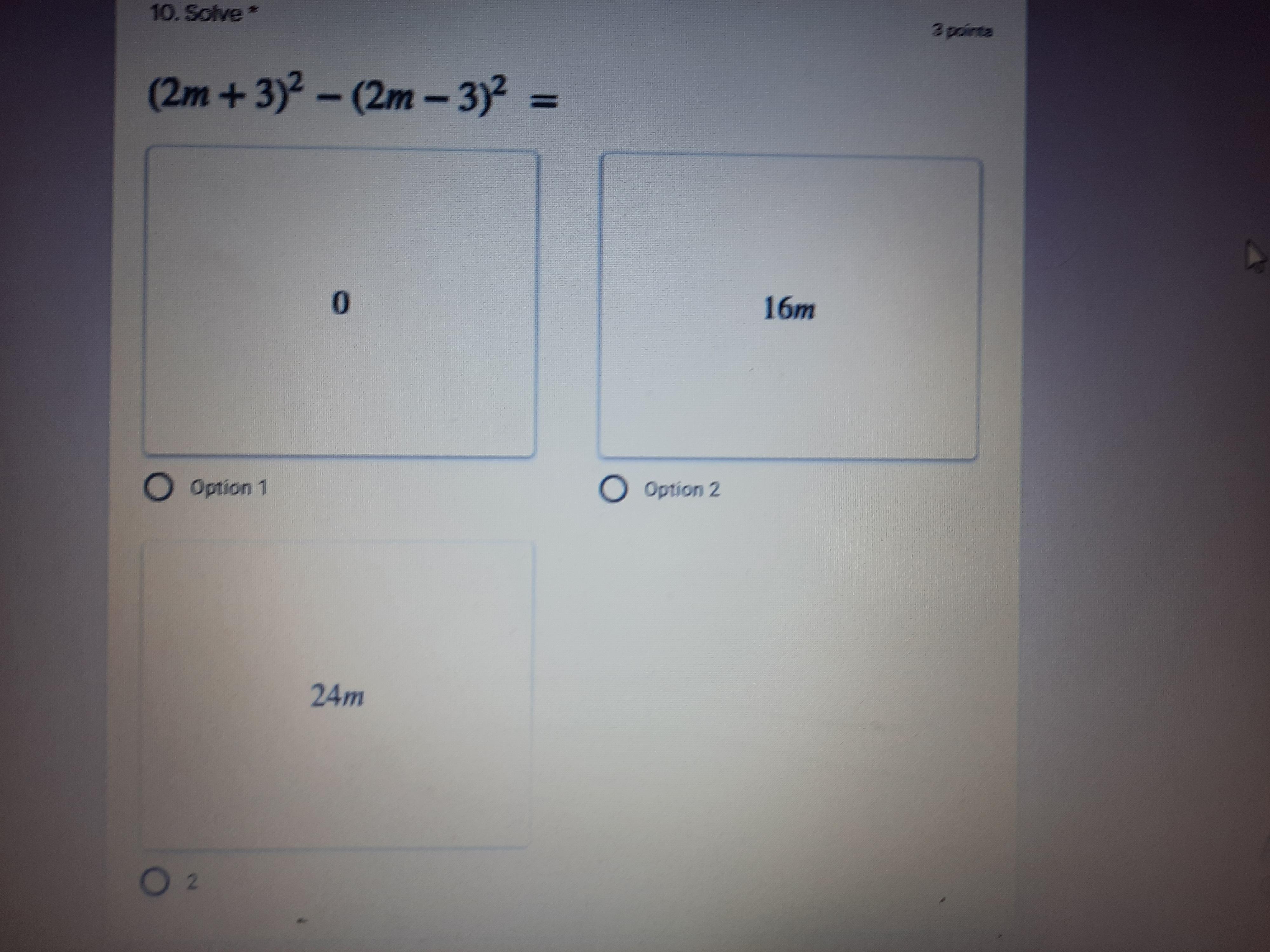 =4m²+12m+9-4m²+12m-9 ⇔ take off parentheses