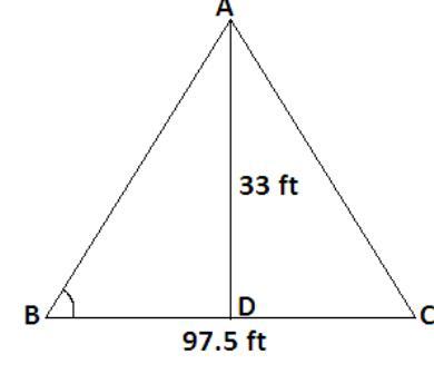One particular 33 feet tall cone dry sand has a base diameter of 97.8 feet. To the nearest tenth of a degree, what is the angle