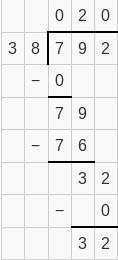 What is the work for 792 divided by 38