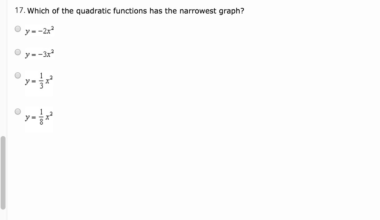 Using these rules/formulas, we can figure out which quad has the narrowest graph.